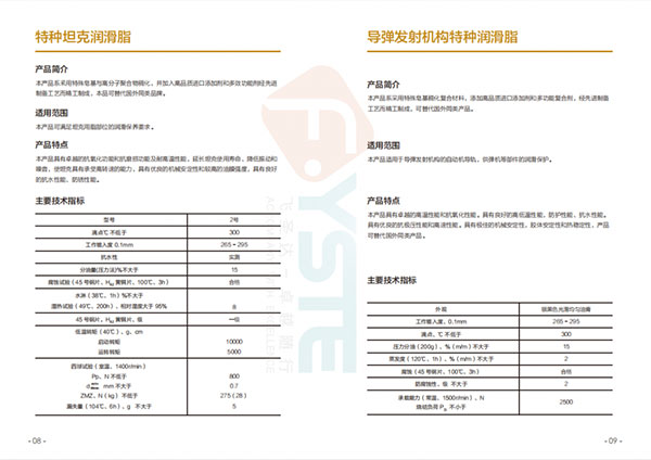 在軍工模塊,我們的油脂產(chǎn)品適應于坦克、導彈發(fā)射臺架、火炮、裝甲車、飛機、儀表齒輪和傳動陀螺桿、直升機擺動軸承、硬膜及軟膜防銹油、鋼絲繩潤滑油、超高溫特種脂等等。