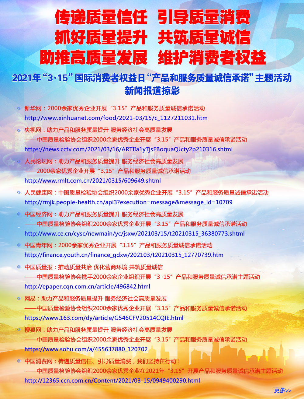 ?。ㄊ模╅_展企業(yè)質(zhì)量檢驗機構(gòu)的評審,開展質(zhì)量評估和推廣質(zhì)量保險業(yè)務(wù),利用各種方式向消費者提供質(zhì)量信息,宣傳和普及質(zhì)量知識和消費常識,傳遞質(zhì)量信任、引導(dǎo)質(zhì)量消費,為市場、企業(yè)和消費者服務(wù),切實維護社會各界的合法權(quán)益;