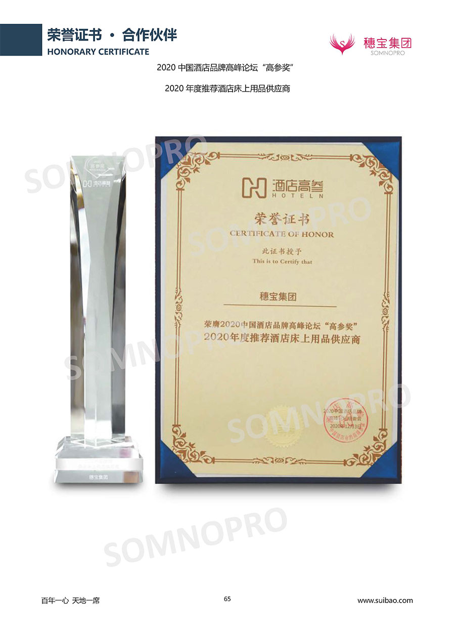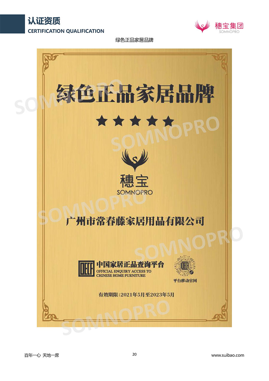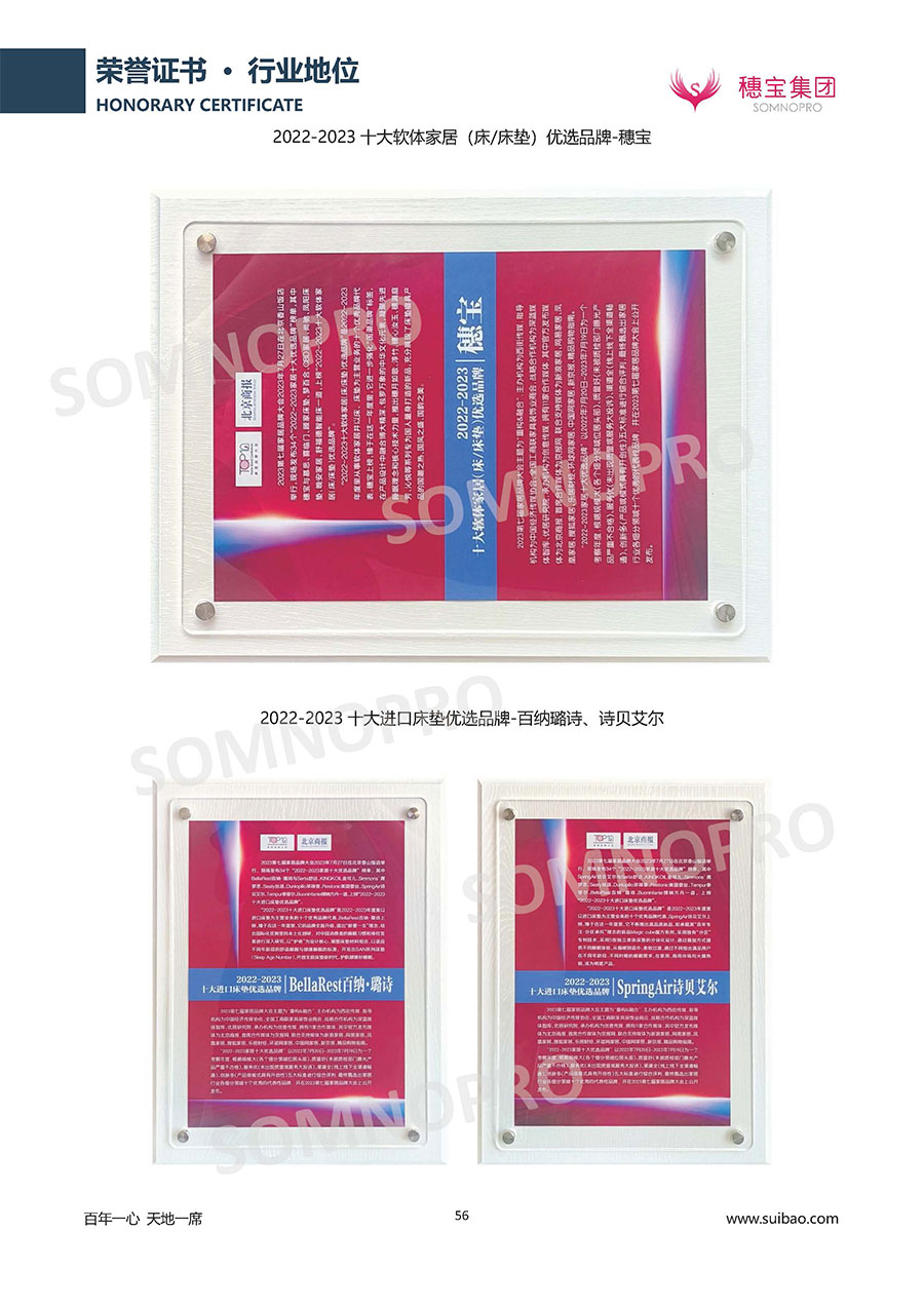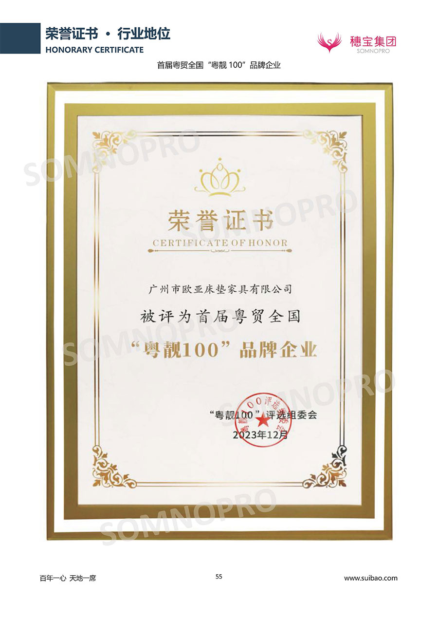 自1971年獨(dú)立研發(fā)生產(chǎn)出專(zhuān)屬?lài)?guó)人的彈簧床墊,穗寶關(guān)于優(yōu)質(zhì)深度睡眠的研究已有半個(gè)世紀(jì)的歷史。穗寶一直專(zhuān)注床墊,專(zhuān)注中國(guó)消費(fèi)者的睡眠研究,針對(duì)中國(guó)人特點(diǎn)進(jìn)行優(yōu)化創(chuàng)新,不斷提升國(guó)人的睡眠體驗(yàn),只為成就每個(gè)晚上8小時(shí)的優(yōu)質(zhì)深度睡眠。憑借不斷革新的研發(fā)科技和深受消費(fèi)者信賴(lài)的產(chǎn)品品質(zhì),穗寶集團(tuán)旗下品牌和產(chǎn)品屢獲國(guó)內(nèi)外大獎(jiǎng),連續(xù)20年榮膺中國(guó)500最具價(jià)值品牌,品牌價(jià)值高達(dá)302.89億元。