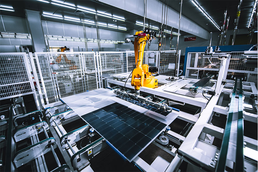 在新能源產(chǎn)業(yè)鏈中游,通威太陽能深度切入太陽能發(fā)電核心產(chǎn)品的研發(fā)、制造和推廣。電池出貨量自2017年以來已連續(xù)8年全球第一(光伏產(chǎn)業(yè)權威分析機構(gòu)PV InfoLink統(tǒng)計),并成為行業(yè)首家電池出貨量累計超過300GW的企業(yè)。現(xiàn)擁有成都、眉山、金堂(全球光伏行業(yè)首個5G智慧園區(qū))、通合、彭山及中威公司。2025年9月,通威太陽能眉山公司獲評全球光伏電池制造領域首個“燈塔工廠”。