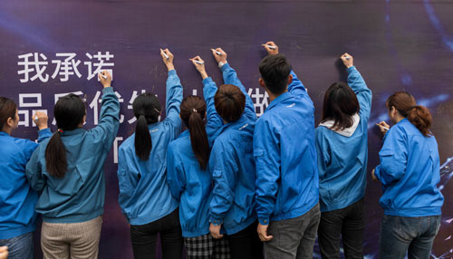 隨后,公司近千名員工在“品質(zhì)優(yōu)先,從我做起”承諾墻上簽名,鄭重地簽下自己的名字,做出了莊重的品質(zhì)承諾,將品質(zhì)月啟動(dòng)儀式推向了高潮。