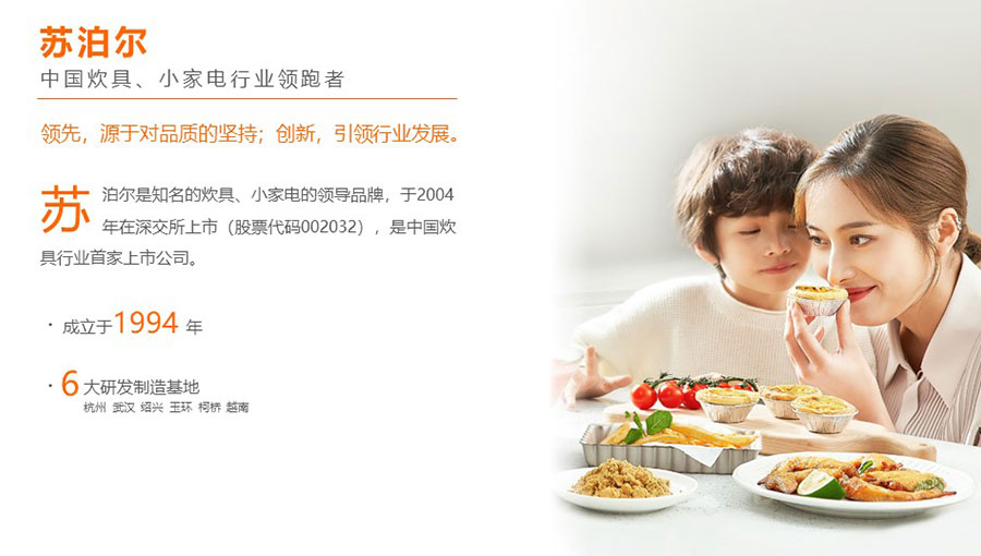 浙江蘇泊爾股份有限公司是中國(guó)最大、全球第二的炊具研發(fā)制造商,中國(guó)廚房小家電領(lǐng)先品牌。在杭州、玉環(huán)、紹興、武漢和越南建立了5大研發(fā)制造基地,擁有1萬(wàn)多名員工。蘇泊爾是中國(guó)炊具行業(yè)首家上市公司(股票代碼002032)。浙江蘇泊爾家電制造有限公司是浙江蘇泊爾股份有限公司的控股子公司,注冊(cè)資本13369萬(wàn)元,自2004年1月成立,主要生產(chǎn)電飯煲、電蒸鍋、電燉鍋、煎烤器等廚房小家電產(chǎn)品。2022年?duì)I收達(dá)到37.65億元,擁有2100多名員工,目前為中國(guó)最大的電飯煲生產(chǎn)基地。