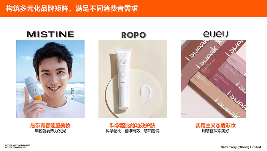 主要產(chǎn)品:MISTINE蜜絲婷防曬,底妝、護(hù)膚、彩妝