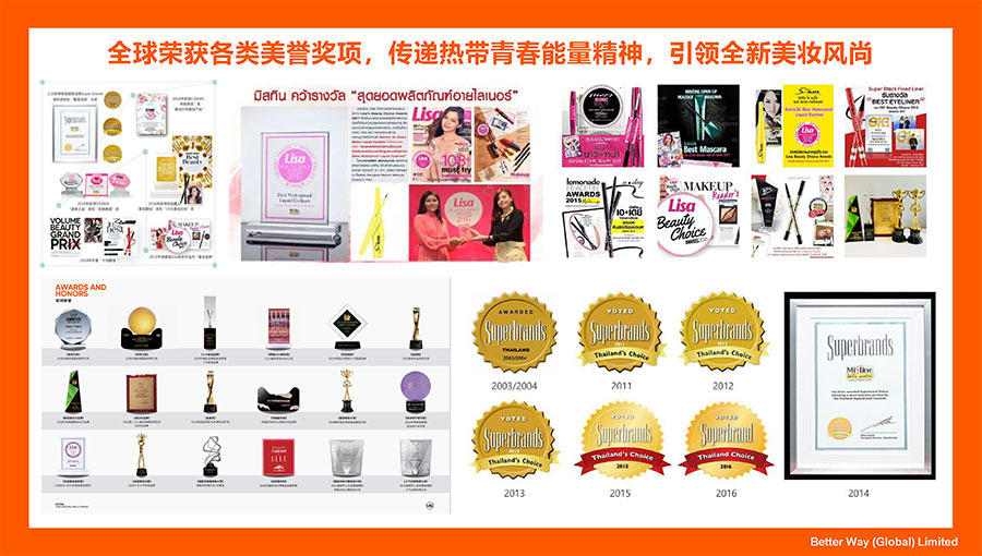近年來(lái),Mistine蜜絲婷更是先后榮獲ELLE雜志“THAILAND BEAUTY AWARDS”大獎(jiǎng)、中國(guó)化妝品大會(huì)藍(lán)玫獎(jiǎng)「2022年度競(jìng)爭(zhēng)力品牌」、天貓金妝獎(jiǎng)「年度防曬獎(jiǎng)」、快手電商「年度甄選好物獎(jiǎng)」、抖音電商「年度好物獎(jiǎng)小IQF國(guó)際品質(zhì)節(jié)暨消費(fèi)領(lǐng)導(dǎo)力峰會(huì)杰出消費(fèi)影響力品牌」、CAQI中國(guó)質(zhì)量網(wǎng)「全國(guó)美妝行業(yè)質(zhì)量領(lǐng)先品牌」、2023美伊大賞TOP·護(hù)膚類(lèi)防曬大獎(jiǎng)、2023美伊大賞TOP·彩妝類(lèi)底妝大獎(jiǎng)等榮譽(yù)。
