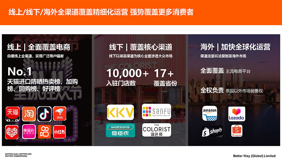 旗下核心打造的泰國(guó)美妝品牌Mistine蜜絲婷,由阿門(mén)貼博士于1988年創(chuàng)立,深耕彩妝護(hù)膚領(lǐng)域35年,專(zhuān)業(yè)底蘊(yùn)深厚。自2016年進(jìn)入中國(guó)市場(chǎng)以來(lái),通過(guò)建立全新品牌形象,不斷豐富產(chǎn)品類(lèi)目、深耕渠道拓展,以精細(xì)化、獨(dú)特化、差異化的優(yōu)勢(shì)類(lèi)目,精準(zhǔn)定位核心消費(fèi)群體,為中國(guó)市場(chǎng)帶來(lái)了小黃帽面部防曬、小藍(lán)帽身體防曬、藍(lán)盾金盾粉底液等諸多爆品,發(fā)展勢(shì)頭迅猛。從2017年開(kāi)始,Mistine蜜絲婷已連續(xù)5年穩(wěn)坐天貓國(guó)際美妝Top3品牌,也是天貓進(jìn)口防曬熱賣(mài)榜、加購(gòu)榜、回購(gòu)榜、好評(píng)榜TOP1,明星單品小黃帽全渠道年度銷(xiāo)量破千萬(wàn)瓶,天貓每銷(xiāo)售8支防曬霜,就有1支來(lái)自Mistine蜜絲婷。