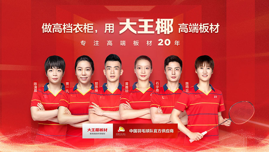 大王椰掌握5項關(guān)鍵除醛技術(shù),100余項國家技術(shù)專利,始終保持技術(shù)引領(lǐng)。大王椰不斷創(chuàng)新產(chǎn)品,陸續(xù)發(fā)布楠香木生態(tài)板、A7家具板、植萃除醛板、抗菌除醛板、A8高定板、1號原木板、雙效抗菌板、ENF級生態(tài)板、實木TT門板、PET柜門板等高端產(chǎn)品。2021年7月,大王椰正式簽約中國羽毛球隊,致力于打造冠軍品質(zhì),大王椰讓更多健康產(chǎn)品走進(jìn)更多家庭。2024年4月,大王椰正式成為航天CNSPACE官方合作品牌,以航天精神為榜樣,不斷提升家居健康品質(zhì)。