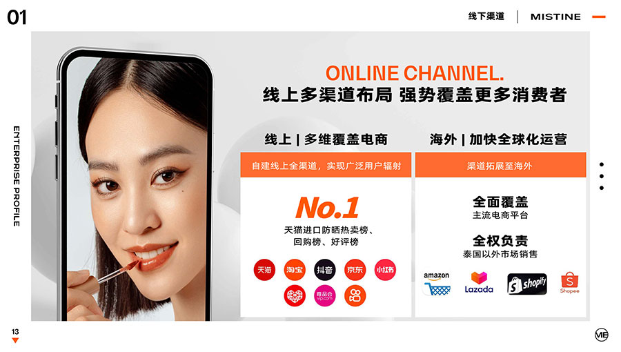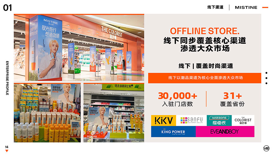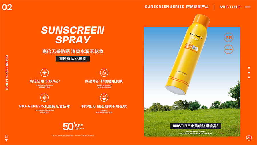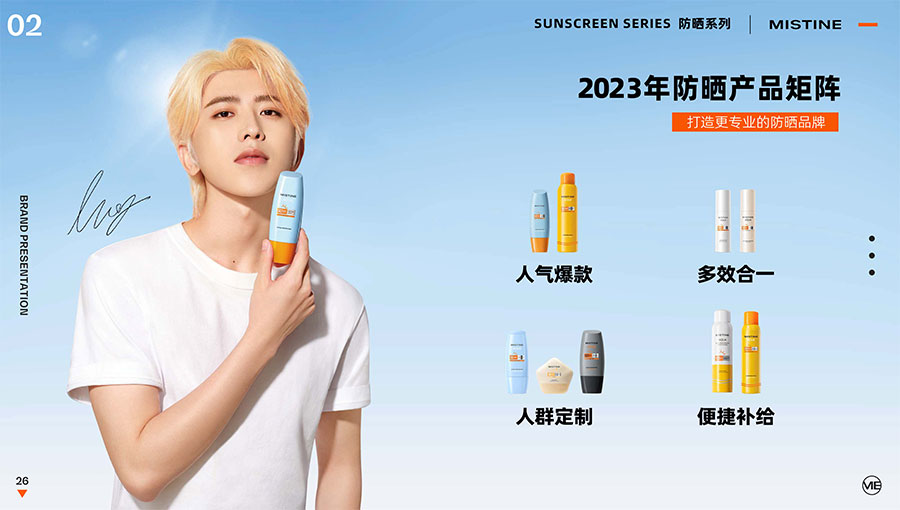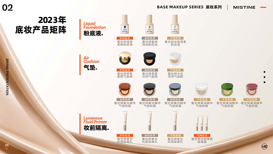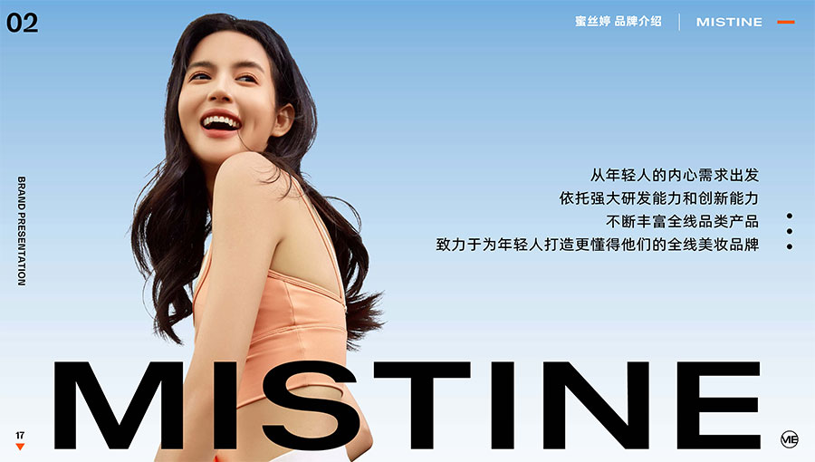 主要產品:MISTINE蜜絲婷防曬、美妝、底妝、彩妝、護膚、香水、個護等產品