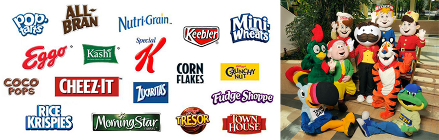目前家樂氏公司在全球的主要品牌包括Kellogg’s、Keebler、Pop-Tarts、Eggo、Cheez-It、Club、 Nutri-Grain、Rice Krispies、Special K、All-Bran、Mini-Wheats、Morningstar Farms、Famous Amos、Ready Crust、Kashi and Pringles。