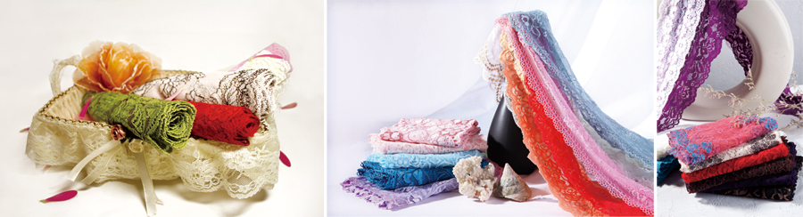 主要產(chǎn)品有高中檔彈性和非彈性花邊、彈性網(wǎng)布、彈性花邊面料、蕾絲等,用于高檔面料裝飾。通過EAT軟件設(shè)計系統(tǒng),也可根據(jù)客戶需求進行自主設(shè)計開發(fā)各種花型工藝。公司生產(chǎn)的產(chǎn)品花樣獨特、工藝花型美觀大方,所采用原材料及后整理加工全部采用國際環(huán)保要求的原料及染化料,產(chǎn)品完全符合出口要求,產(chǎn)品在國內(nèi)外占有重要市場,且暢銷歐美、日本、東南亞等國家。