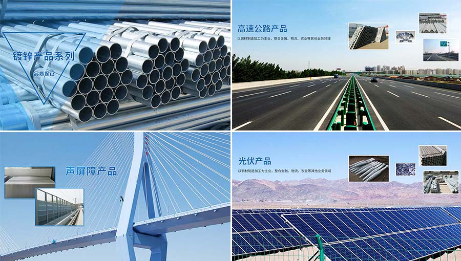 集團(tuán)下屬有各類焊管、螺旋管制造、熱電鍍鋅、噴塑浸塑、納米加工、公路安全設(shè)施材料制造、鐵路聲屏障制造、大型鑄鍛件制造、鋼板樁制造、電力設(shè)施、新能源等十多個(gè)企業(yè)和二十多個(gè)分公司。專業(yè)生產(chǎn)、銷售4分至8寸高頻焊接鋼管、219-2540規(guī)格的螺旋鋼管、石油天然氣管、厚壁管、高速公路安全設(shè)施產(chǎn)品、鐵路聲屏障產(chǎn)品,電力鐵塔、光伏產(chǎn)品,各種規(guī)格的鋼管、扁鐵、圓鋼、角鋼及鐵制大小件的生產(chǎn)和熱鍍鋅電鍍鋅加工、靜電噴塑和納米加工。是以鋼鐵制作加工為主業(yè),集物流服務(wù)、現(xiàn)代旅游農(nóng)業(yè)、新能源配套、金融業(yè)等行業(yè)為一體的多功能跨領(lǐng)域的大型集團(tuán)。產(chǎn)品成功銷往美洲、歐洲、中東、東南亞等國(guó)家和地區(qū),與美國(guó)、印度、荷蘭、澳大利亞、阿聯(lián)酋、韓國(guó)等國(guó)客商建立了業(yè)務(wù)合作關(guān)系。