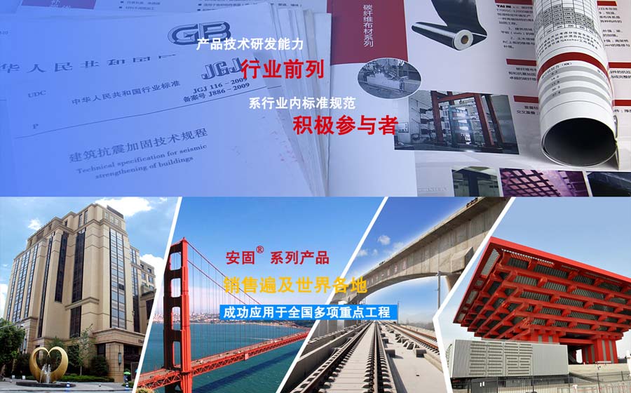 安固公司產(chǎn)品有:化學錨固系統(tǒng)、結構補強系統(tǒng)、鋼筋砼結構修復系統(tǒng)、石材干掛固定系統(tǒng)等全系列產(chǎn)品。其中植筋膠、化學錨栓、碳纖維布為國內一線品牌,碳纖維布全面取代進口,植筋膠市場占有率為國內首位。安固旗下經(jīng)國家商標局注冊品牌有:安固、ANGUC安德固、ATAIRI臺日、ANKASHI安卡石、SUOSHI索石。