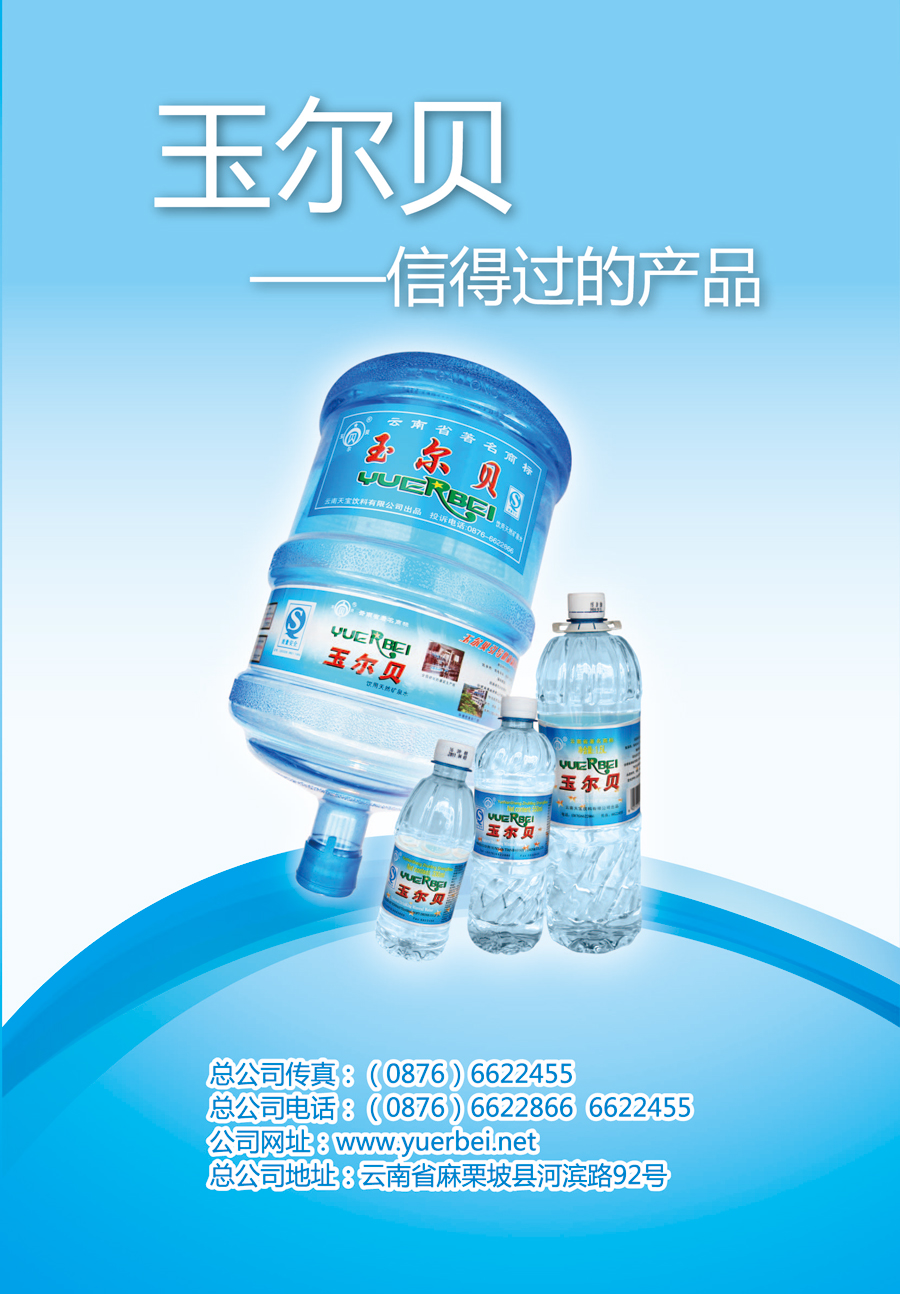 依托于優(yōu)異、豐沛的自然資源與人才、技術(shù)優(yōu)勢,公司不斷致力于打造一流的企業(yè)產(chǎn)品與品牌形象。“玉爾貝”飲用天然礦泉水自投放市場以來,以其優(yōu)越的品質(zhì)與服務(wù)信譽,先后榮獲“中國知名食品上榜品牌、中國進(jìn)入WTO推薦產(chǎn)品、全國綠色消費優(yōu)選品牌,全國男子籃球職業(yè)聯(lián)賽—紅河奔?;@球俱樂部指定飲用水、云南省消費者喜愛商品、云南省放心食品、云南省放心食品生產(chǎn)企業(yè)”等眾多冠名和殊榮。2004年,公司以其先進(jìn)的生產(chǎn)設(shè)備設(shè)施,完善的質(zhì)量體系管理,在省內(nèi)同行業(yè)中率先獲得全國食品工業(yè)產(chǎn)品生產(chǎn)許可證。通過了食品生產(chǎn)“QS質(zhì)量安全”、食品生產(chǎn)衛(wèi)生等級“A級單位”、文山州綠色“環(huán)保型工廠”認(rèn)證。2005年“玉爾貝”飲用天然礦泉水被確定為“云南省著名商標(biāo)”。嚴(yán)格規(guī)范的管理使公司在全省水源及質(zhì)量統(tǒng)檢中連續(xù)10年獲“先進(jìn)企業(yè)”稱號,連續(xù)三年被評為全省十家受表彰“先進(jìn)企業(yè)”之一。