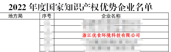 近日,國家知識產(chǎn)權(quán)局發(fā)布了《關(guān)于確定2022年新一批及通過復(fù)核的國家知識產(chǎn)權(quán)示范企業(yè)和優(yōu)勢企業(yè)的通知》通知,浙江優(yōu)食環(huán)境科技有限公司榮獲“2022年度國家知識產(chǎn)權(quán)優(yōu)勢企業(yè)”的稱號。