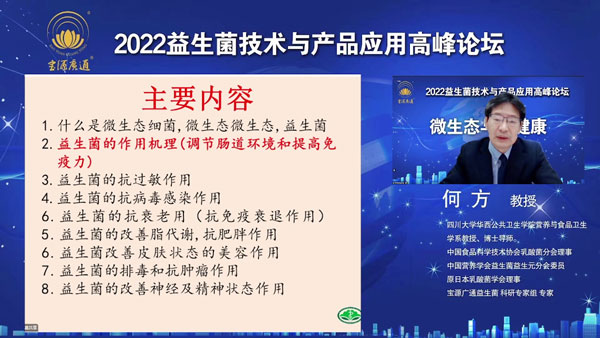 2022年12月14-16日,在全國疫情防控政策優(yōu)化形勢下,由寶源廣通(北京)科技集團有限公司主辦,北京寶源廣通科技發(fā)展有限公司承辦的“2022益生菌技術(shù)與產(chǎn)品應(yīng)用高峰論壇”以線上直播的形式成功舉辦。