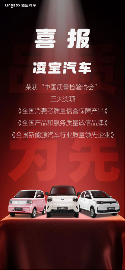 誠信為本,質量為先。近日,凌寶汽車摘得中國質量檢驗協(xié)會“全國消費者質量信譽保障產(chǎn)品”“全國產(chǎn)品和服務質量誠信品牌”“全國新能源汽車行業(yè)質量領先企業(yè)”三項大獎,為今年的圓滿收官畫上了濃墨重彩的一筆。