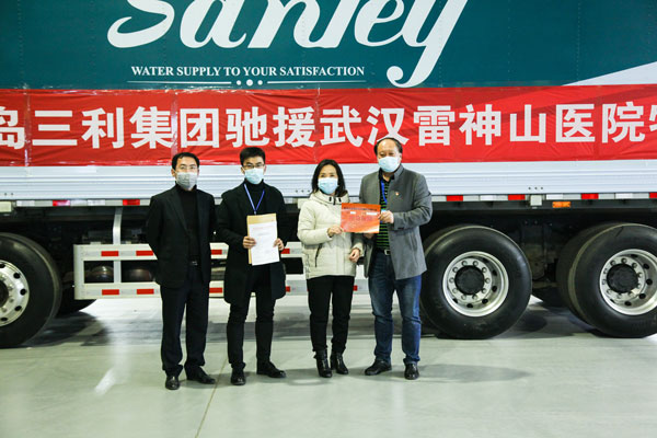 為確保雷神山醫(yī)院在2月5日完成交付,50多名尚在假期中的工人火速集結(jié),連夜開始了這場(chǎng)“閃擊戰(zhàn)”。公司其他訂單全為這套供水設(shè)備讓路,各道工序上投入的都是經(jīng)驗(yàn)豐富的精兵強(qiáng)將,12個(gè)車間機(jī)器轟鳴,馬力全開。公司高管不斷協(xié)調(diào)進(jìn)度,全體工人徹夜不休,終于在2月2日17時(shí)完成了設(shè)備的組裝。再經(jīng)過(guò)仔細(xì)調(diào)試,確保萬(wàn)無(wú)一失之后,青島三利集團(tuán)將這套價(jià)值180余萬(wàn)元的設(shè)備星夜發(fā)往武漢。