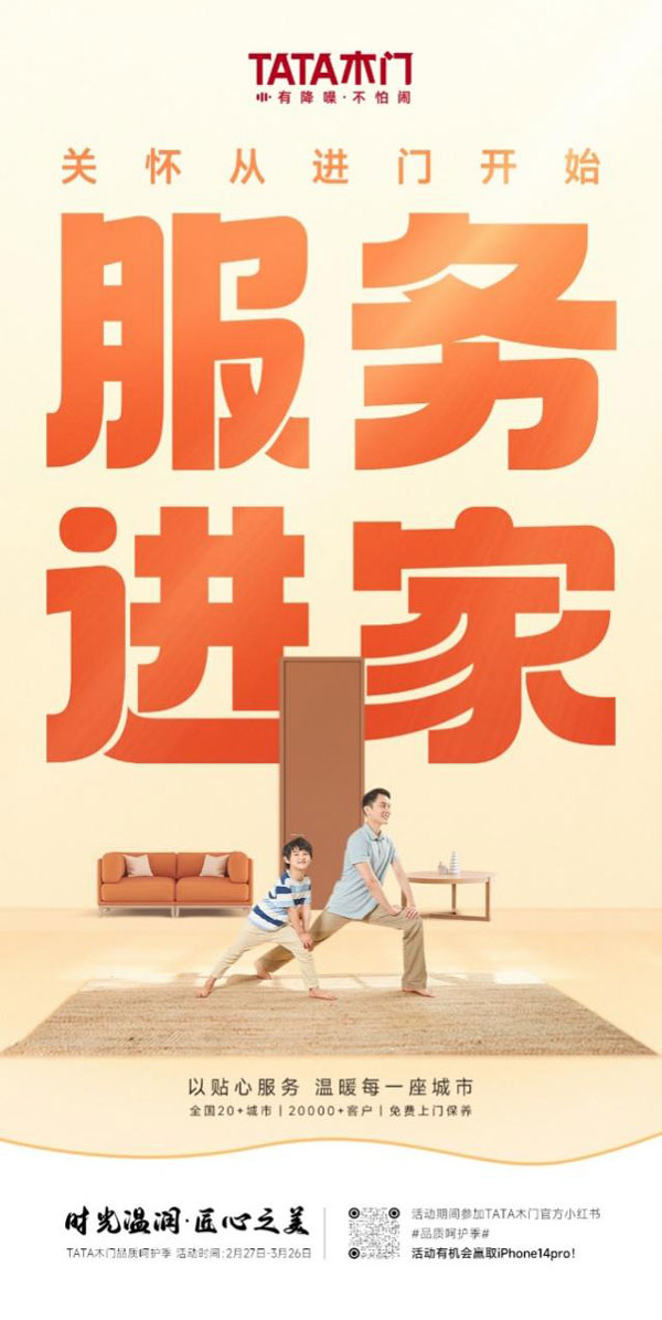 與此同時,TATA木門延續(xù)了往年的服務月活動,特別為全國20多座城市,20000多位用戶提供免費上門保養(yǎng)服務,用實際行動傳遞著品牌的溫度。除此之外,為回饋新老用戶,TATA木門推出木門放心購活動,以超值的價格全新讓利于消費者,打通全平臺銷售通道,讓消費者能夠以最值的價格獲得最優(yōu)質的品質和服務。