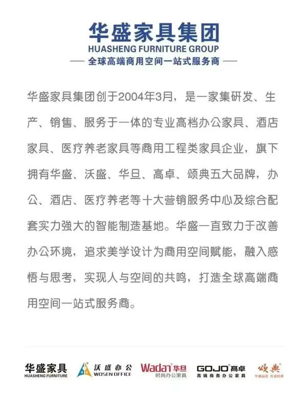 作為在“中國(guó)辦公家具重鎮(zhèn)”成長(zhǎng)起來的龍頭企業(yè)以及中山市辦公家具行業(yè)協(xié)會(huì)會(huì)長(zhǎng)單位,華盛希望向整個(gè)辦公家具產(chǎn)業(yè)和消費(fèi)市場(chǎng)傳遞華盛穩(wěn)實(shí)、積極進(jìn)取、值得信任和信賴的平臺(tái)型、服務(wù)型的企業(yè)形象,從而團(tuán)結(jié)全市辦公家具行業(yè)力量,借力全國(guó)乃至全球資源,助力中山市“中國(guó)辦公家具重鎮(zhèn)”建設(shè),助推中國(guó)辦公家具產(chǎn)業(yè)高質(zhì)量發(fā)展,擴(kuò)大區(qū)域知名度和行業(yè)影響力,讓辦公家具企業(yè)得以更好更快的發(fā)展,同時(shí)積極籌劃中山打造“中國(guó)商用家具之都”!