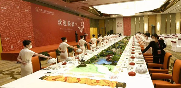 根據(jù)省委提出的“務(wù)實(shí)、高效、安全、節(jié)儉”的辦會(huì)原則,集團(tuán)在對(duì)上兩屆大會(huì)晚宴接待工作全面復(fù)盤(pán)的基礎(chǔ)上,將傳統(tǒng)宴會(huì)服務(wù)與個(gè)性化服務(wù)相結(jié)合,創(chuàng)新細(xì)化工作方案,嚴(yán)明工作紀(jì)律要求。根據(jù)“統(tǒng)分結(jié)合”模式,實(shí)施“清單化管理、項(xiàng)目化推進(jìn)、制度化保障”,確保層層有人抓、事事有人管、件件能落實(shí)。在用品用具調(diào)配上,本著“能儉不奢、能用不換”的原則,集團(tuán)對(duì)上兩屆大會(huì)晚宴的服裝、餐具等用品用具進(jìn)行了全面梳理和盤(pán)點(diǎn),做到物盡其用、拾遺補(bǔ)缺、簡(jiǎn)樸節(jié)??;在食材選擇和菜肴出品上,就地取材、應(yīng)時(shí)而獲、因材烹制,以水韻江蘇“江河湖海”相串聯(lián),“傳統(tǒng)菜、時(shí)令菜、地標(biāo)菜、創(chuàng)新菜”四菜合一,體現(xiàn)江蘇的地域性、淮揚(yáng)菜“色香味形”的統(tǒng)一性、綠色有機(jī)食材的鄉(xiāng)土性、安全性和人文典故與經(jīng)典傳承的文化性,給嘉賓帶來(lái)視覺(jué)與味覺(jué)的雙重盛宴。尤其值得一提的是,晚宴注重提煉展示江蘇地域文化精髓,堅(jiān)持創(chuàng)造性轉(zhuǎn)化、創(chuàng)新性發(fā)展,如前菜設(shè)計(jì)上巧妙融入了贊美江蘇的經(jīng)典詩(shī)詞,紙是糯米紙,墨是墨魚(yú)汁,筆是巧克力,筆架是如意糖,創(chuàng)新餐飲文化表達(dá)方式,引發(fā)了鄉(xiāng)情共鳴,彰顯了文化自信,嘉賓們紛紛贊嘆金陵“細(xì)微之處見(jiàn)功夫”。