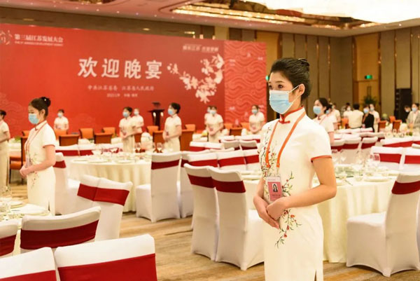 為了保障晚宴接待服務(wù)萬(wàn)無(wú)一失,集團(tuán)從金陵飯店股份有限公司、江蘇金陵旅游投資管理集團(tuán)有限公司、南京金陵酒店管理有限公司所轄酒店抽調(diào)優(yōu)秀的廚師、服務(wù)人員,大部分人員具有前兩屆大會(huì)晚宴積累和沉淀的豐富經(jīng)驗(yàn),組成了“以老帶新”的接待服務(wù)團(tuán)隊(duì),并針對(duì)本次晚宴的特點(diǎn)進(jìn)行了嚴(yán)格的專(zhuān)業(yè)培訓(xùn)和全要素演練。在兄弟單位鼎力支持和團(tuán)結(jié)協(xié)作下,較短的時(shí)間內(nèi)完成了從菜單落實(shí)、餐具準(zhǔn)備、統(tǒng)一制服,到場(chǎng)地布置、流程設(shè)計(jì)、物資采購(gòu)等一系列工作。憑著精湛的技藝和踏實(shí)的作風(fēng),在宴會(huì)當(dāng)晚,菜肴出品簡(jiǎn)約精致,宴會(huì)流程順暢規(guī)范,接待服務(wù)自信從容,進(jìn)一步擦亮了“金陵”金字招牌,彰顯國(guó)企責(zé)任擔(dān)當(dāng)。