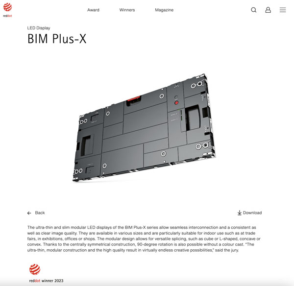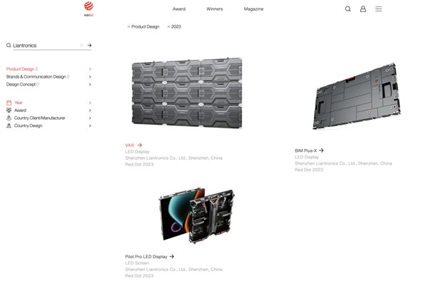 近日,2023年德國紅點設(shè)計大獎名單公布。聯(lián)建光電VAIII系列微間距顯示屏、Pilot Pro系列租賃顯示屏、BIM Plus-X系列室內(nèi)商業(yè)顯示屏三款產(chǎn)品同時斬獲素有設(shè)計界“奧斯卡”之稱的紅點設(shè)計獎,這三款產(chǎn)品凝聚著全球前沿技術(shù)和創(chuàng)新設(shè)計,實至名歸。據(jù)統(tǒng)計,聯(lián)建光電是2023紅點獎中獲獎最多的LED顯示品牌。
