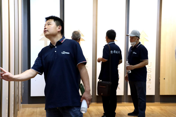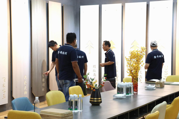 在隆飾精品展廳中,大家興趣十足,依次欣賞著不同系列板材產(chǎn)品所打造的定制家具效果,讓大家更直觀地了解隆飾板材,增加經(jīng)營信心,讓經(jīng)銷商對隆飾產(chǎn)品更加具有信心!