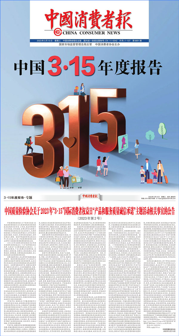 中國質(zhì)量檢驗協(xié)會關(guān)于2023年“3·15”國際消費(fèi)者權(quán)益日