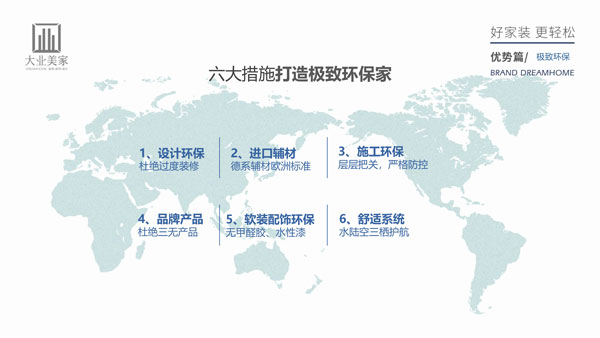 大業(yè)美家追求的是極致環(huán)保,目前我們的極致環(huán)保體系措施主要有六項: