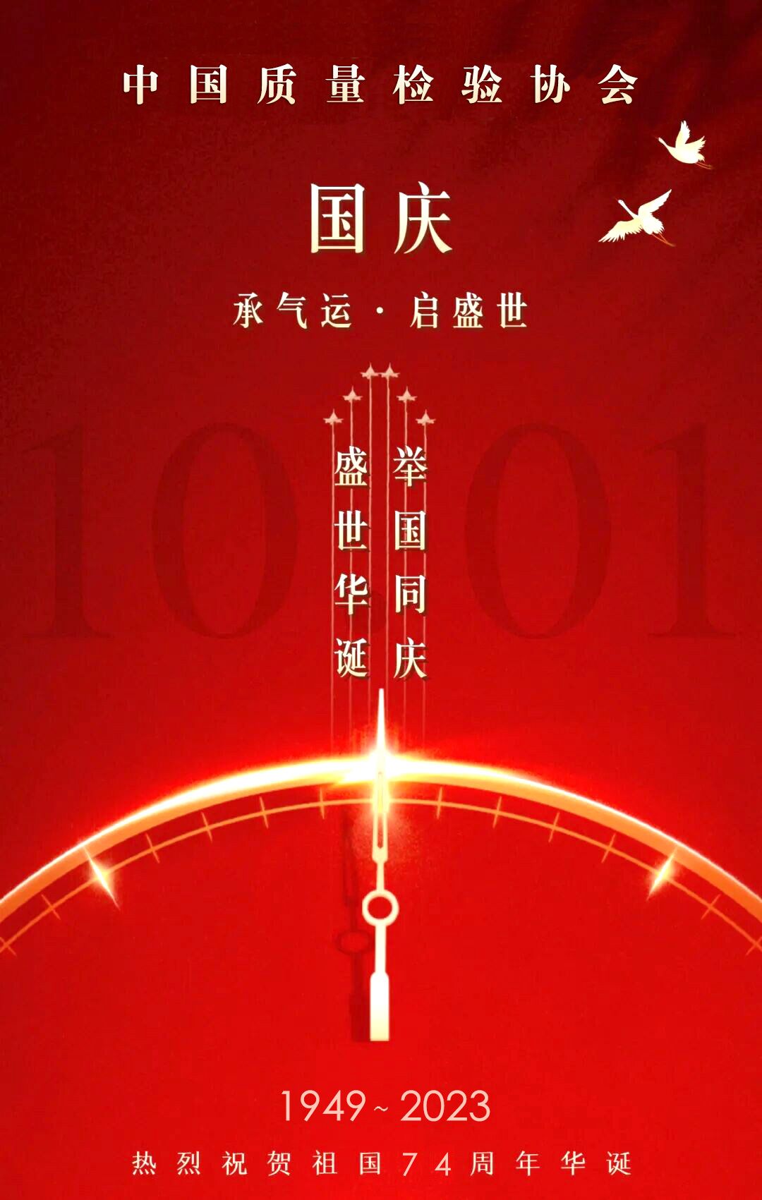 山河披錦繡,盛世寫華章。2023年10月1日,我們迎來(lái)中華人民共和國(guó)成立74歲華誕。中國(guó)質(zhì)量檢驗(yàn)協(xié)會(huì)謹(jǐn)此攜全體會(huì)員誠(chéng)摯祝福偉大的中華人民共和國(guó):生日快樂(lè)!