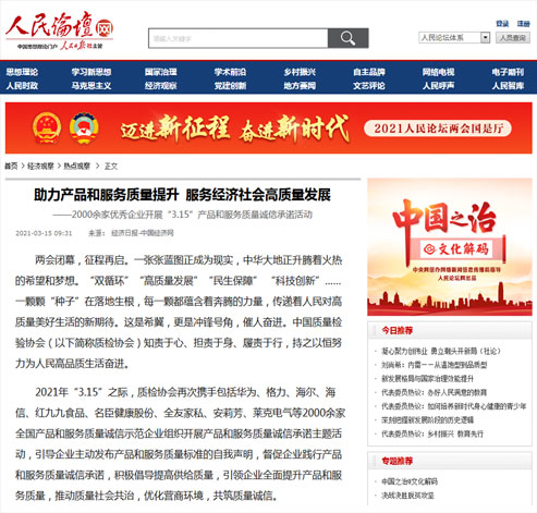 人民網(wǎng):2000家質(zhì)量好企業(yè)"3.15"作出誠(chéng)信承諾