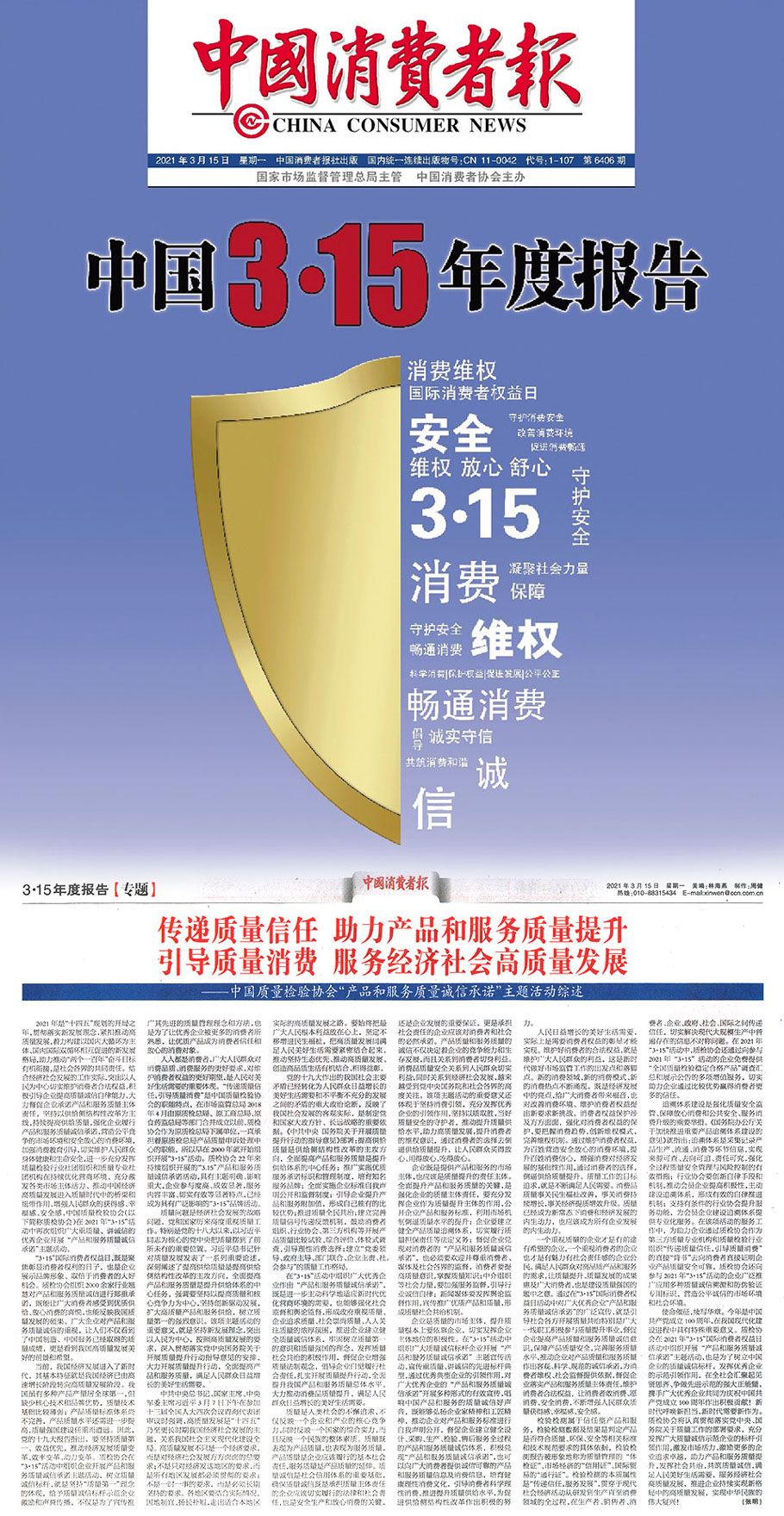 2021年“3.15”國(guó)際消費(fèi)者權(quán)益日“產(chǎn)品和服務(wù)質(zhì)量誠(chéng)信承諾”主題活動(dòng)相關(guān)新聞報(bào)道掠影