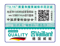 【防偽合格證 • 售后服務(wù)卡一體化標(biāo)識】采用專用紙型制作,將防偽可變信息與產(chǎn)品售后服務(wù)信息統(tǒng)一制作在售后服務(wù)卡上,既省去了貼標(biāo)的工序環(huán)節(jié),又切實提高了生產(chǎn)效率,在有效解決企業(yè)防偽應(yīng)用的基礎(chǔ)上,大大節(jié)省企業(yè)的生產(chǎn)成本,同時,以第三方質(zhì)量專業(yè)機(jī)構(gòu)和質(zhì)量檢驗行業(yè)組織的名義向消費(fèi)者傳遞對企業(yè)產(chǎn)品的信任,加大消費(fèi)者對企業(yè)品牌的消費(fèi)信任度。