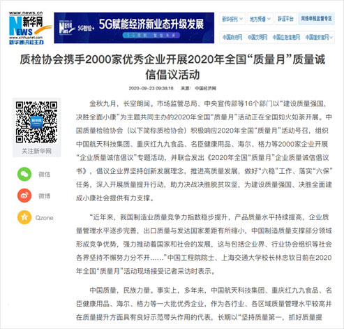 新華網(wǎng):質檢協(xié)會攜手2000家優(yōu)秀企業(yè)開展2020年全國“質量月”質量誠信倡議活動