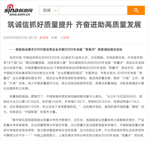 新浪網(wǎng):筑誠信抓好質量提升 齊奮進助高質量發(fā)展——質檢協(xié)會攜手2000家優(yōu)秀企業(yè)開展2020年全國“質量月”質量誠信倡議活動