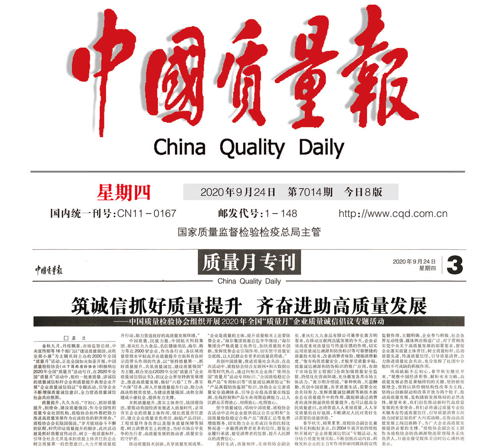 中國質量報:筑誠信抓好質量提升 齊奮進助高質量發(fā)展——中國質量檢驗協(xié)會組織開展2020年全國“質量月”企業(yè)質量誠信倡議專題活動